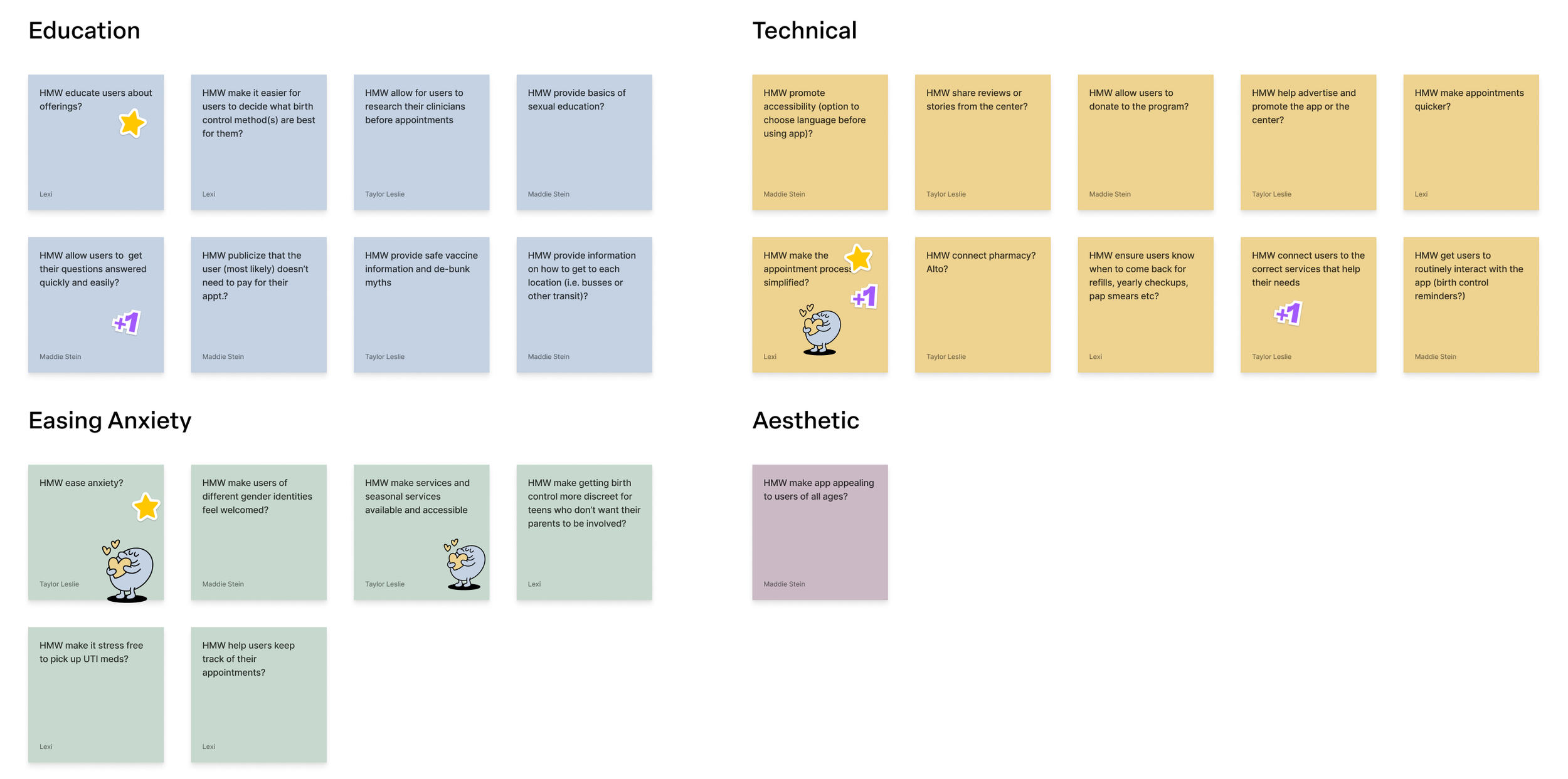 Through user interviews, we aimed to gather insights into users' perceptions and preferences regarding reproductive health services and mobile applications. Participants were asked open-ended questions, such as "What factors contribute to your experience of stress or comfort when seeking reproductive health services?" and "How would you cope with a situation requiring urgent care for a UTI outside of normal business hours?" These responses were recorded to gain a deeper understanding of user needs and preferences. From there, we made an empathy map to visually display our findings.