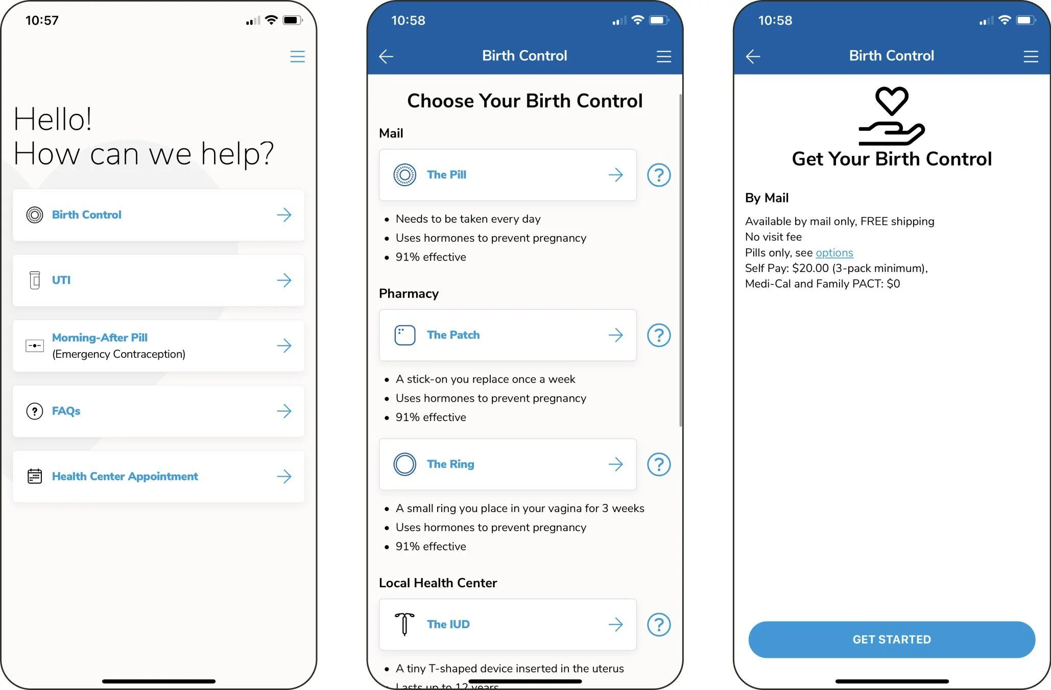 Included a survey on the home page for Birth Control, UTI, and Plan B to match users with the right medications and procedures.