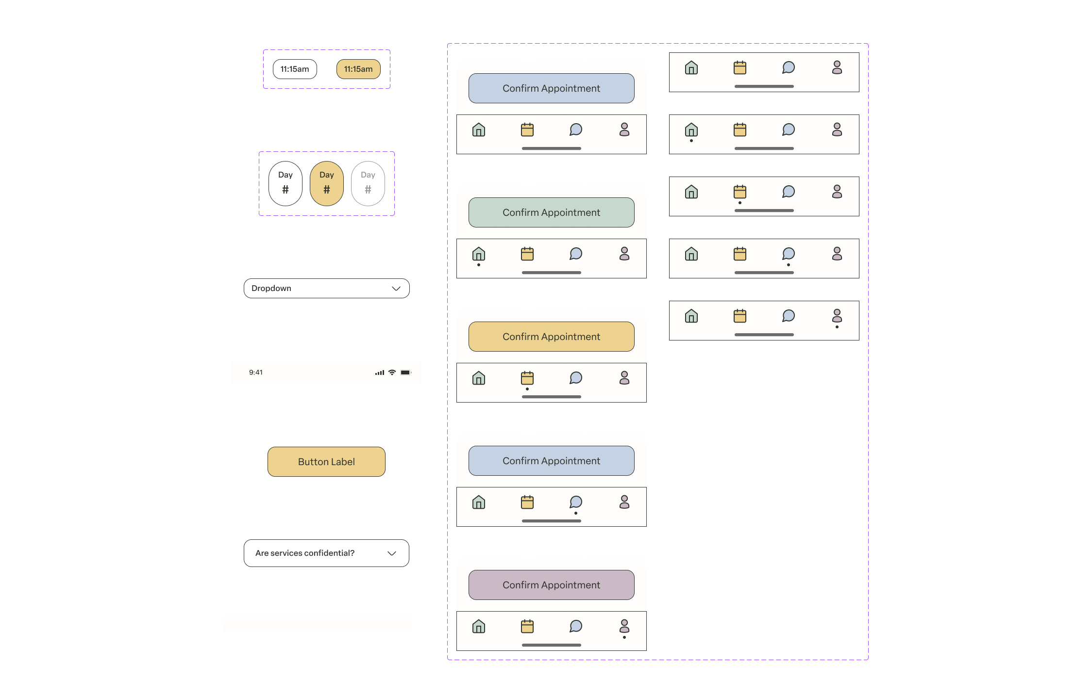 We created a design system that included components, icons, and buttons that could all be updated quickly and conveniently throughout iterations of our screen designs. The navigation was specifically focused on as it is featured on all screens and bles